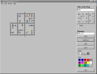 Current Version: 1.4. New features include FTP Support and the ability to save as project (enables you to save maps with colors). The concept is straightforward. Use the keypad to create a map. Then manipulate it using the mouse and save it . NEW! You can now also generate mud-rooms from a map you have made. |